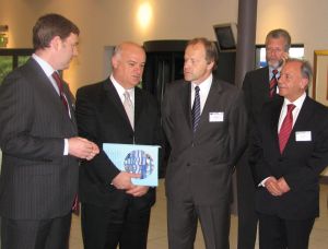 | Chair and co-Chairs of EurOCEAN 2007 - from left to right: Peter Heffernan (Marine Institute, Ireland), Joe Borg (EU Commissioner for Fisheries and Maritime Affairs), Lars Horn (Marine Board – ESF), Peter Herzig (KDM, Germany) and Joao Coimbra (CIMAR, Portugal) © MB/ESF |