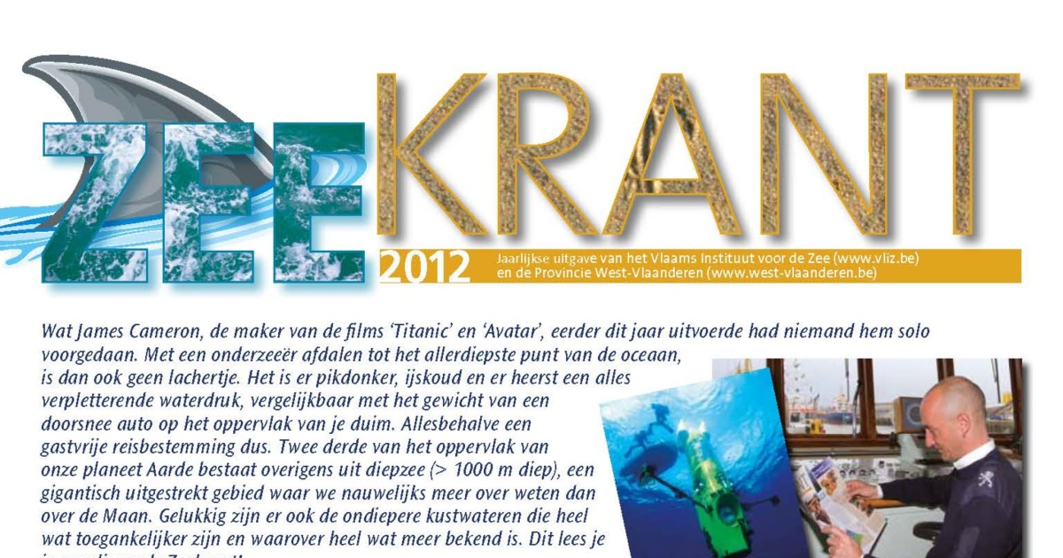 Copejans, E.; Seys, J. (Ed.) (2012). Zeekrant 2012: jaarlijkse uitgave van het Vlaams Instituut voor de Zee en de Provincie West-Vlaanderen. Zeekrant ... : jaarlijkse uitgave van het Vlaams Instituut voor de Zee en de Provincie West-Vlaanderen, 2012. Vlaams Instituut voor de Zee (VLIZ)/Provincie West-Vlaanderen: Oostende. 8 pp.