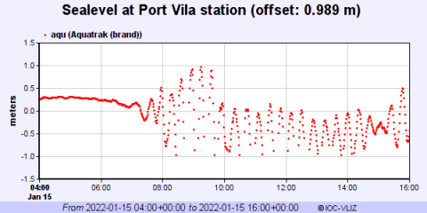 Normaal worden trage golfbewegingen van het getij geregistreerd, maar de data van 15 januari waren opmerkelijk anders. Toen was een reeks kort op elkaar volgende golven merkbaar, wat aanduidt dat een tsunami gepasseerd is. Aan diverse meetstations werden golven tot twee meter geregistreerd, zo bijvoorbeeld ook aan het station op Port Vila, de hoofdstad van Vanuatu.
