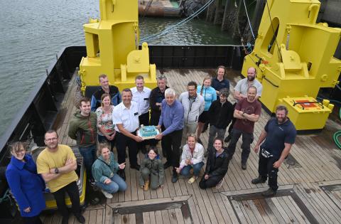 Op 25 mei, exact 10 jaar geleden, voer het onderzoeksschip Simon Stevin de haven van Oostende binnen. Redenen genoeg dus om met de bemanning van VLOOT en de zeewetenschappers van VLIZ even stil te staan met een gepast taartje. Wij kijken alvast uit naar het najaar van 2022, wanneer deze 10de verjaardag op gepast manier zal gevierd worden. Wat er dan precies te gebeuren valt, blijft nog even een geheim... Houd daarvoor de vertrouwde VLIZ-media in de gaten of volg het schip via de Facebook-pagina van RV Simon Steven!