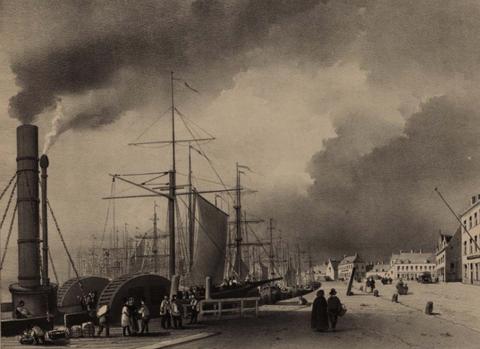 Afbeelding bovenaan: Lithografie van Louis-Joseph Ghémar en Eduard Manche op de Visserskaai, met vooraan een raderstoomboot; uit Album d’Ostende (1841).