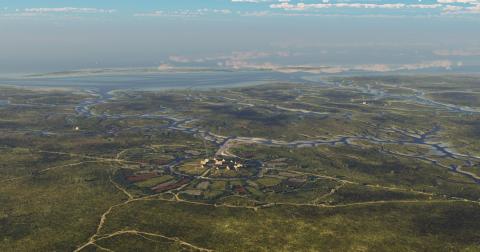 Reconstructie 'Artist impression' van Leffinge voor de bedijking (10de eeuw)