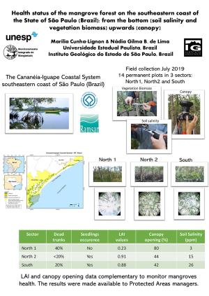 Health status of the mangrove forest on the southeastern coast of the State of São Paulo (Brazil): from the bottom (soil salinity and vegetation biomass) upwards (canopy)