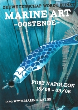 ![]() | ‘Marine Art’ was a unique project where 32 marine scientists from the University of Ghent and the Flanders Marine Institute (VLIZ) inspired the teachers and 1200 (!) students of the Visual Arts Academy in Ghent in workshops on the status of the seas and ocean and their science work in several fields. The art students each created one or more art works on the ocean life & environment and marine science insights. Teachers and students from a large range of art disciplines participated: drawing art, painting, graphics, mixed media, ceramics, illustration & cartoon, photography and animated film. All art work was exposed – together with the science that gave the inspiration to it - during a large exposition in Ghent (2-6 February 2013; 8000 visitors). [Read more] The current expo "Marine Art - Oostende" shows a selection of these art works in Fort Napoleon in Oostende; the cultural heritage site in the dunes (open from Wednesday till Sunday between 10:00-12:00 & 13:00-17:00; 5 euro). [Read more] In the week before World Ocean Day various workshops (for primary schools) and evening lectures (for the public at large) are organised on themes that also formed the inspiration for some of the works of art shown in expo. [Read more] |