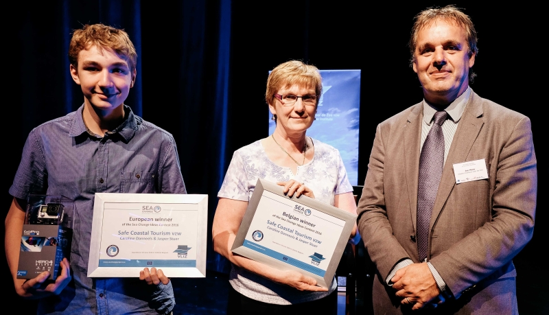 Of all 56 approved entries, a national winner was assigned for each of the seven project partnering countries. Additionally, one entry was awarded an overall European prize. Both the Belgian and European prize went to the non-profit organization Safe Coastal Tourism. This was founded by Caroline Danneels after the unfortunate loss of her son Bavo Verheyden, who drowned at sea in 2011. Caroline is strongly determined to make people more aware on the dangers of the sea. Hence, the idea she submitted for Sea Change - together with middle school student Jasper Stuer - is about raising awareness amongst young kids, by storytelling and game development, hoping to lessen the overall existing underestimation of the dangers of the sea.
