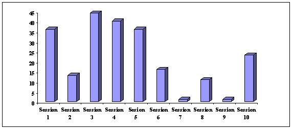 Figure 2. Distribution of messages to the various sessions of the e-Conference.