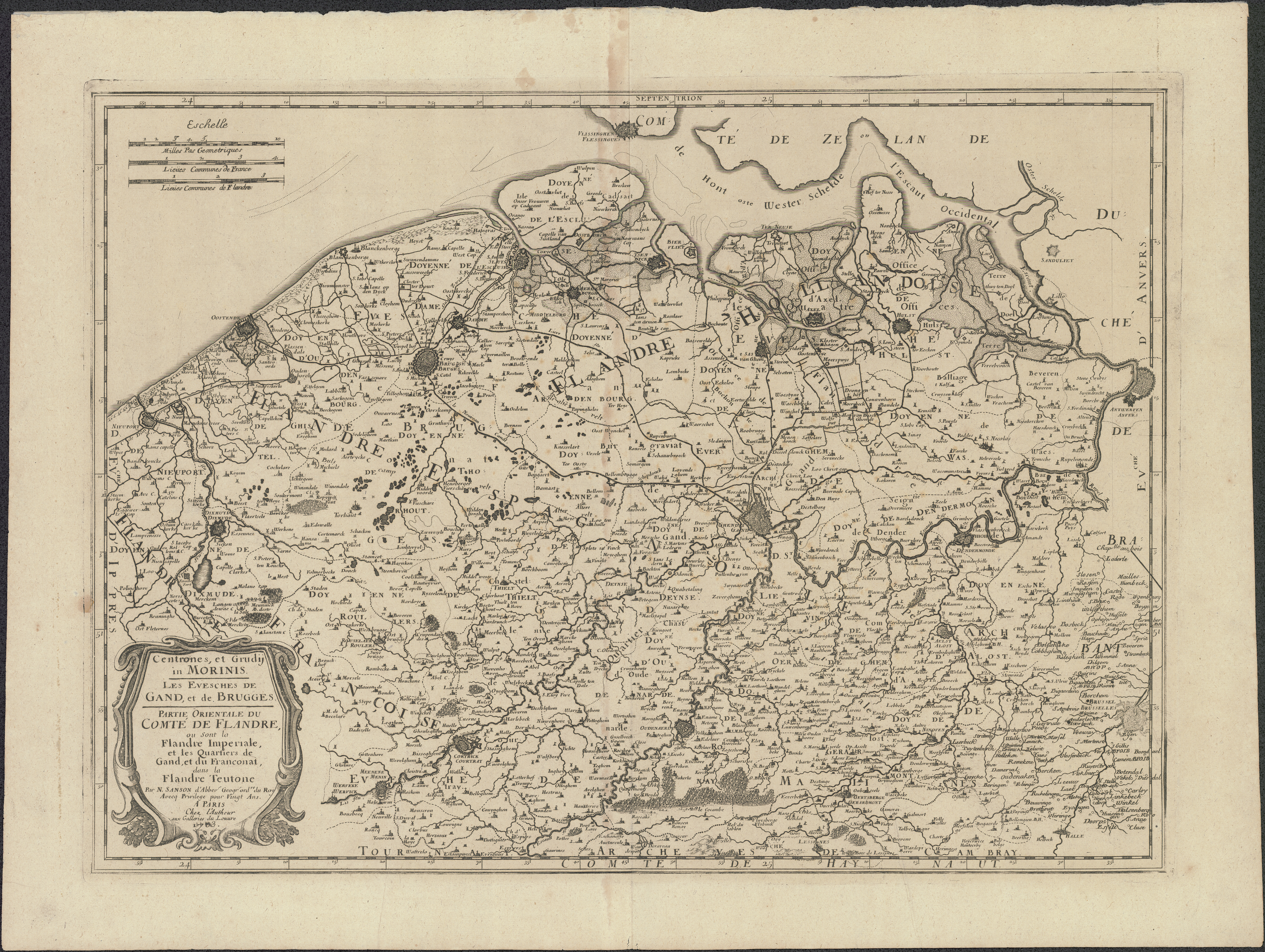 Centrones et grudii in Morinis. Les évèschés de Gand et de Brugges. Partie orientale du Comté de Flandre, ou sont la Flandre Imperiale et les quartiers de Gand et du Franconat dans la Flandre Teutone (1703)