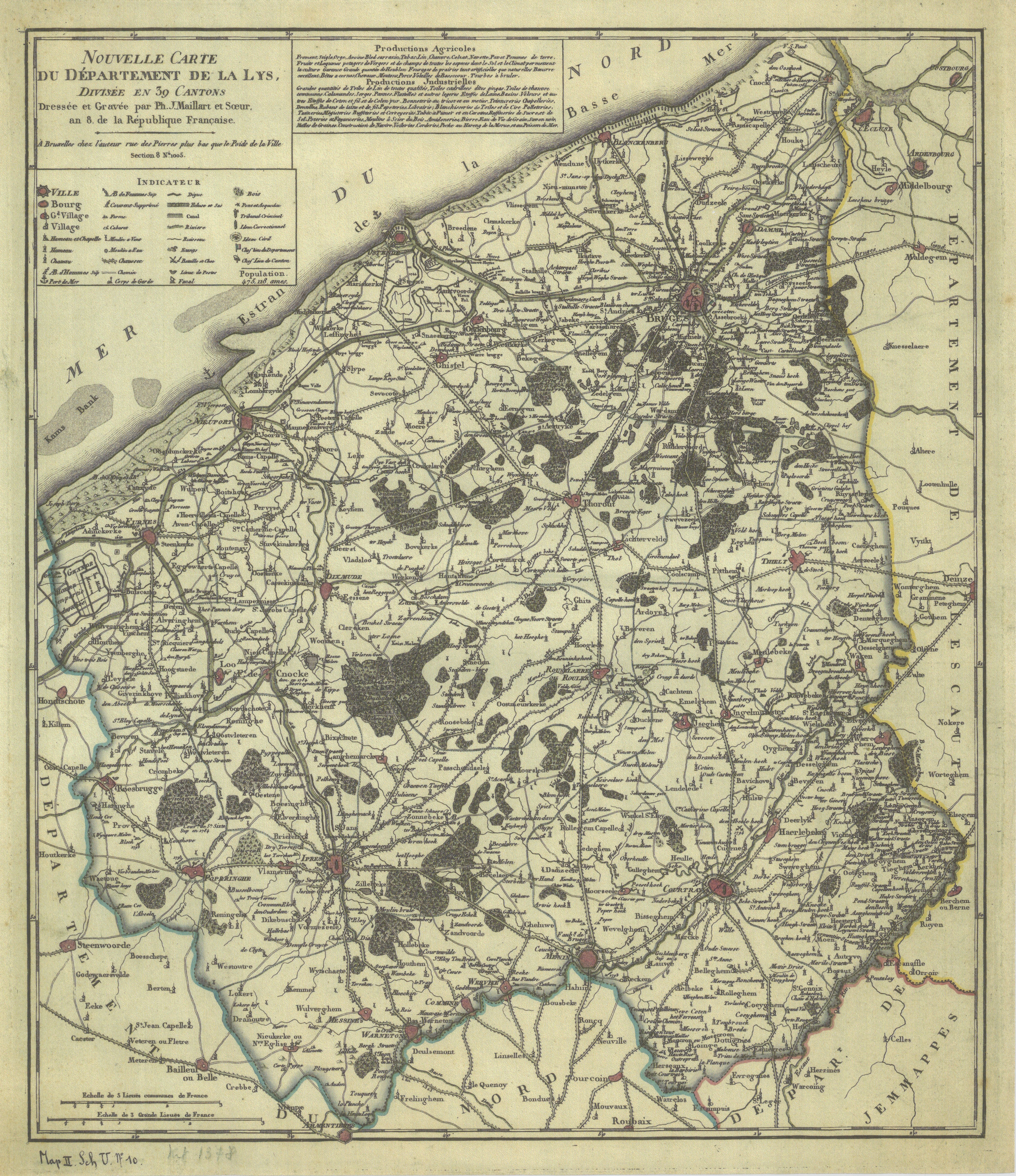 Nouvelle carte du département de la Lys divisée en 39 cantons. Kaart Leiedepartement.