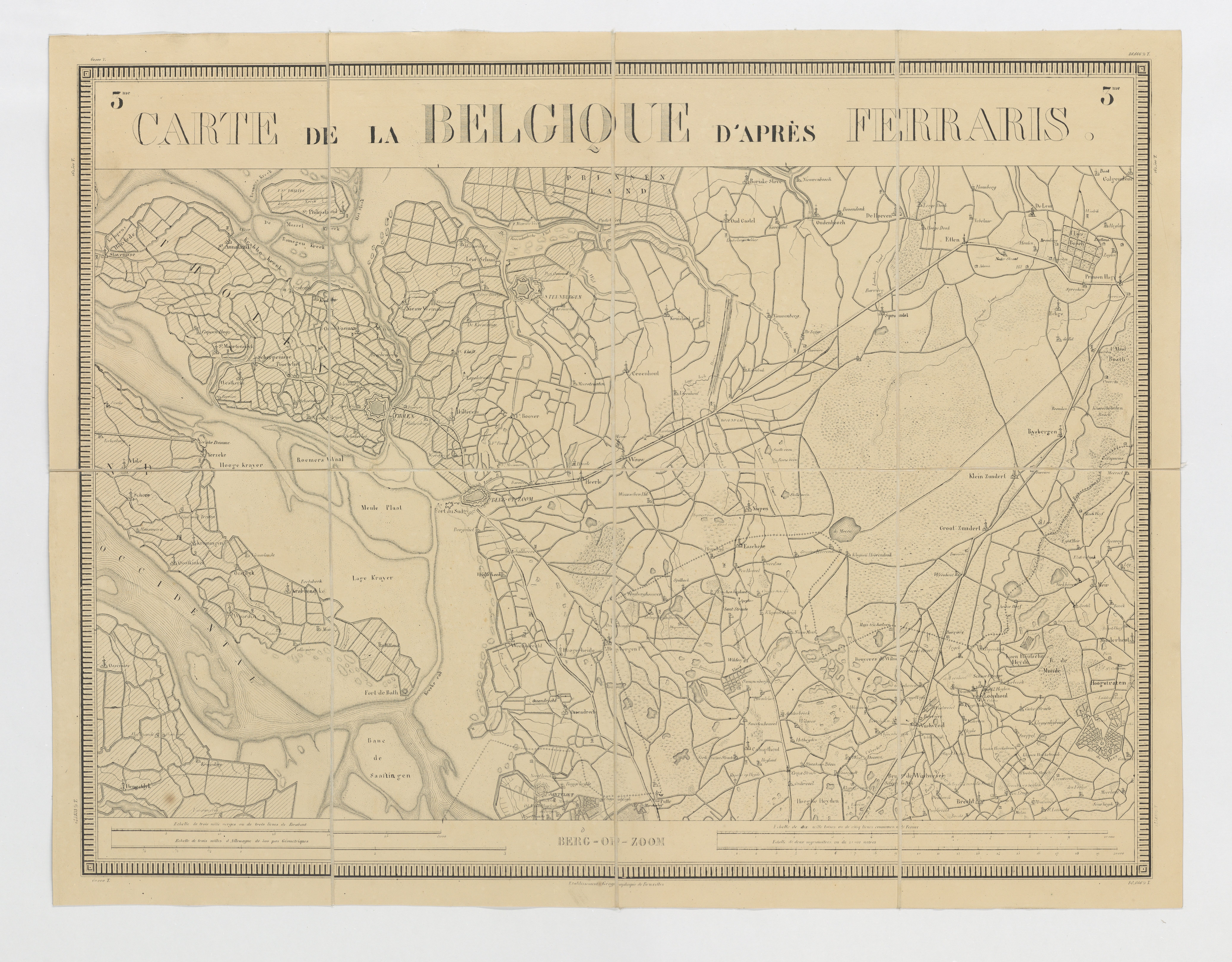 Carte de la Belgique d'après Ferraris, augmentée des plans des six villes principales et de l'indication des routes, canaux et autres traveaux exécutés depuis 1777 jusqu'en 1831. 42 feuilles. I - Berg-Op-Zoom
