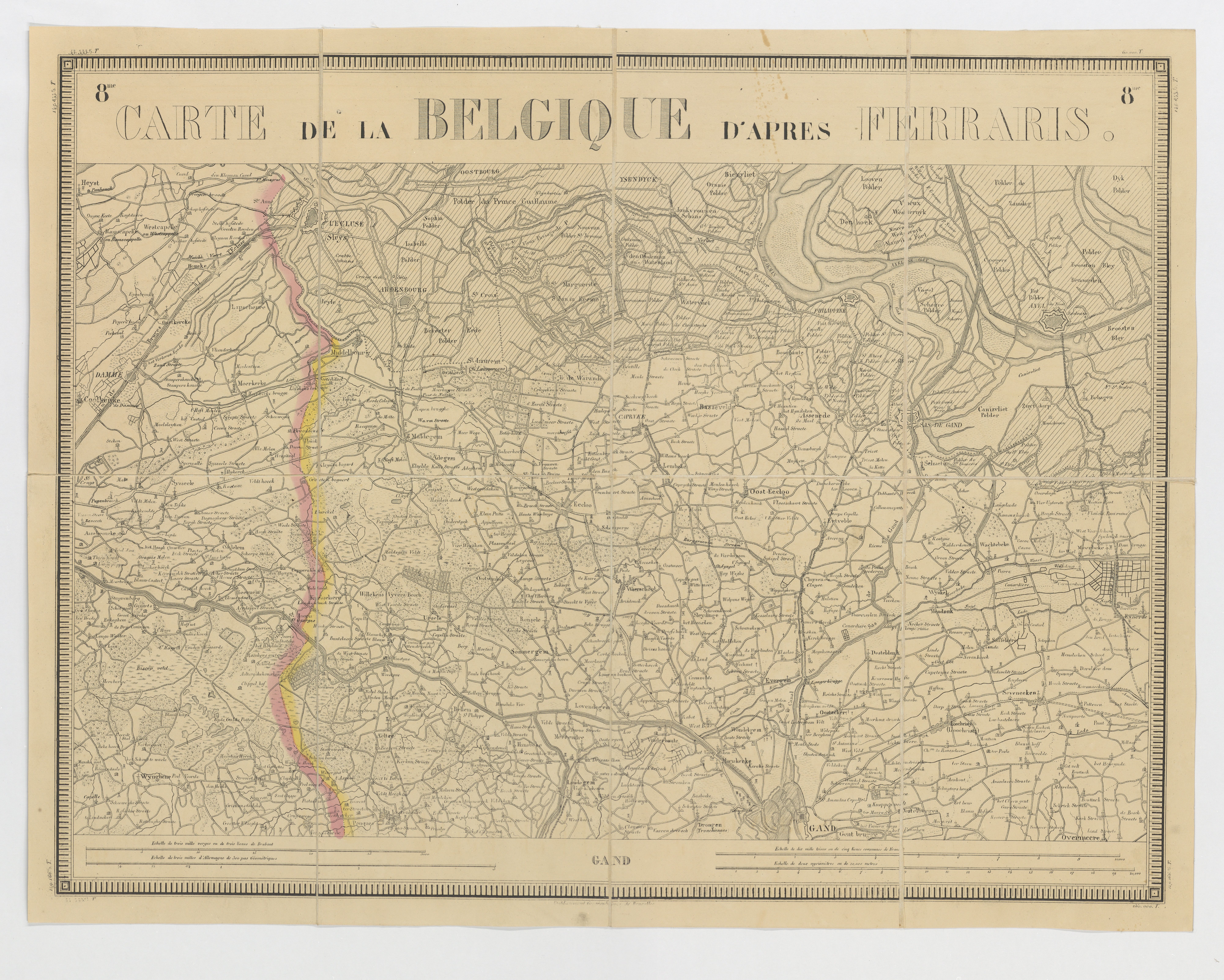 Carte de la Belgique d'après Ferraris, augmentée des plans des six villes principales et de l'indication des routes, canaux et autres traveaux exécutés depuis 1777 jusqu'en 1831. 42 feuilles. I - Gand