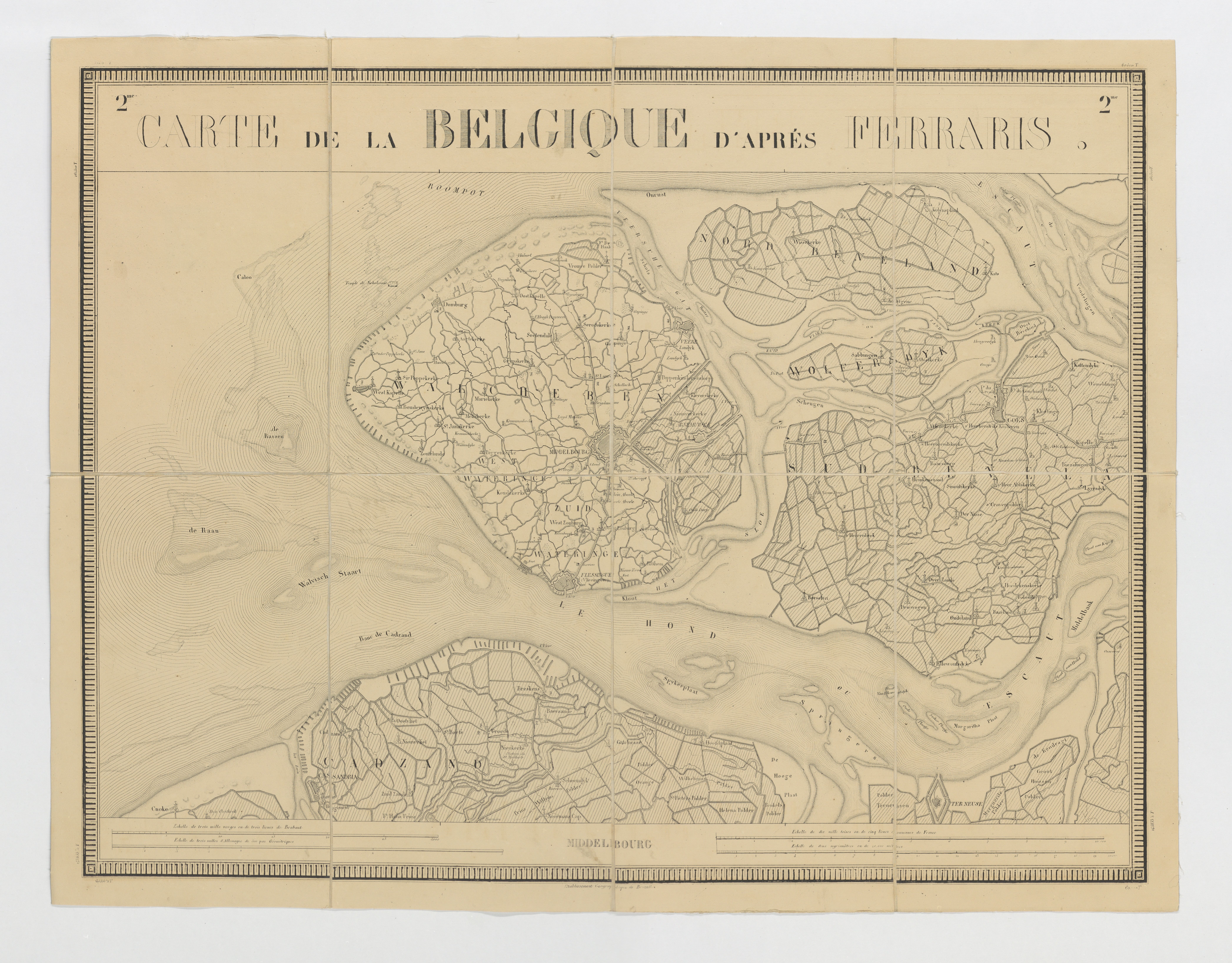 Carte de la Belgique d'après Ferraris, augmentée des plans des six villes principales et de l'indication des routes, canaux et autres traveaux exécutés depuis 1777 jusqu'en 1831. 42 feuilles. I - Middelbourg