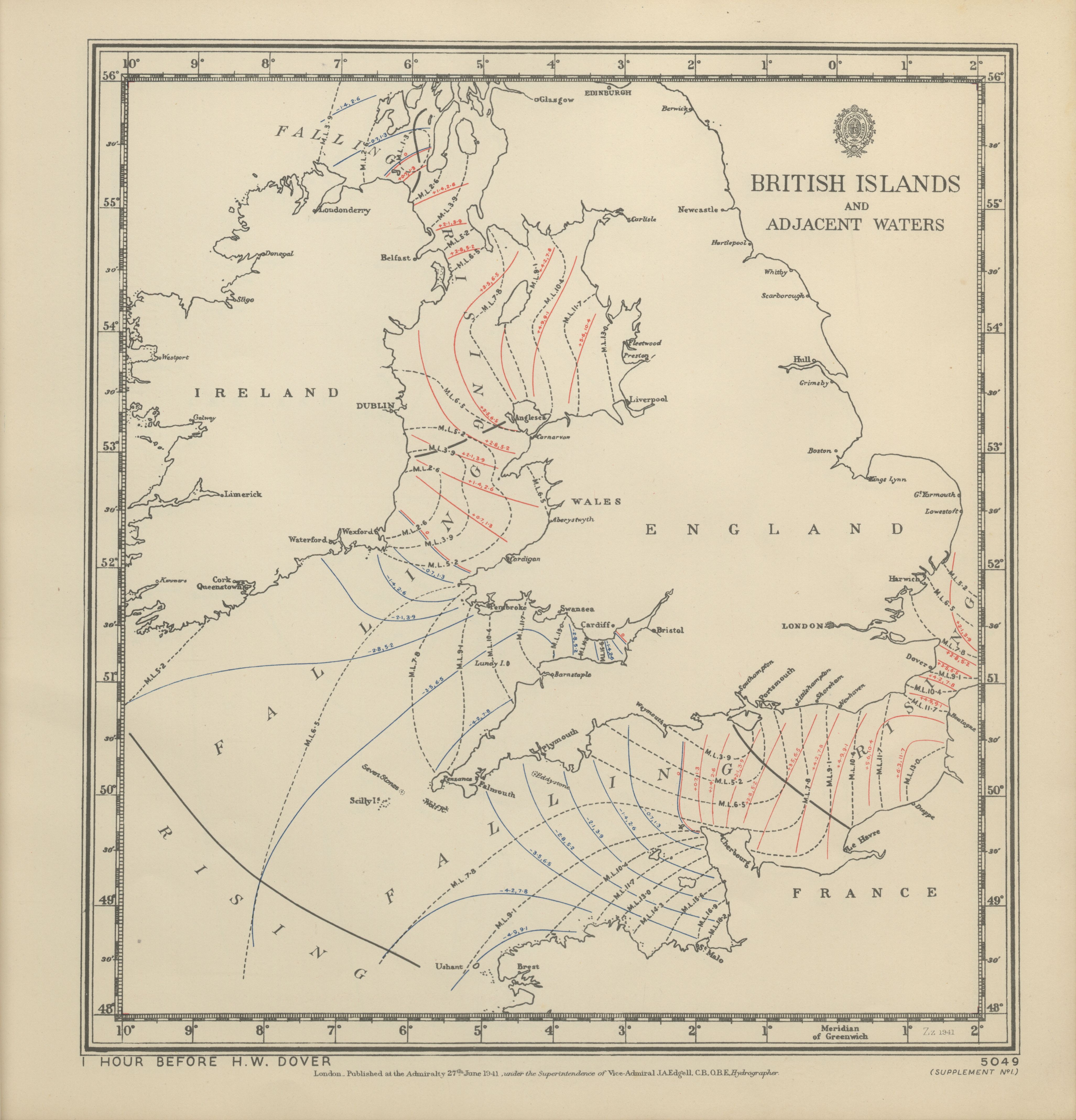 Atlas of tides and tidal streams - British Islands and adjacent waters. 1 hour before H.W. Dover