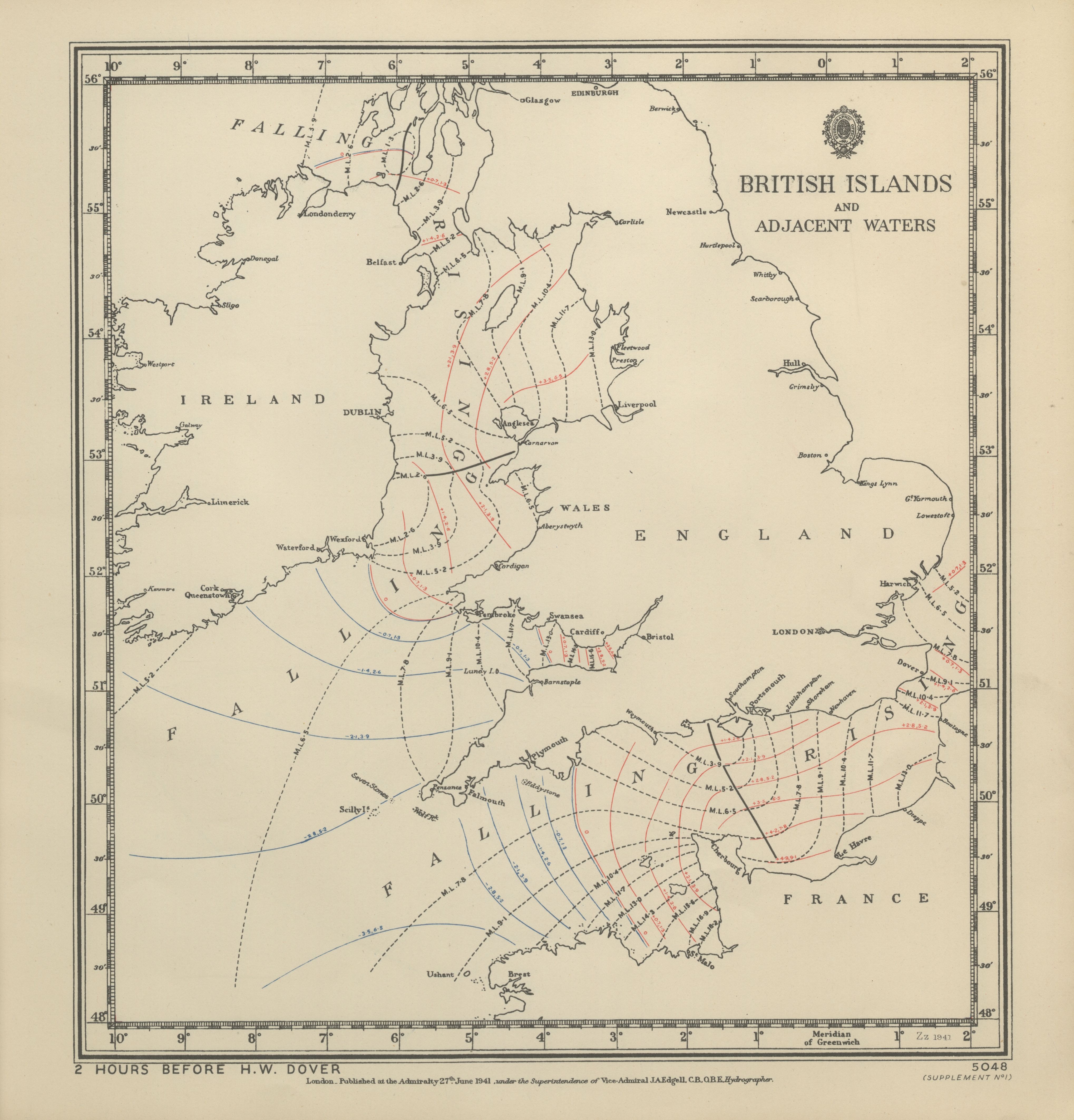 Atlas of tides and tidal streams - British Islands and adjacent waters. 2 hours before H.W. Dover