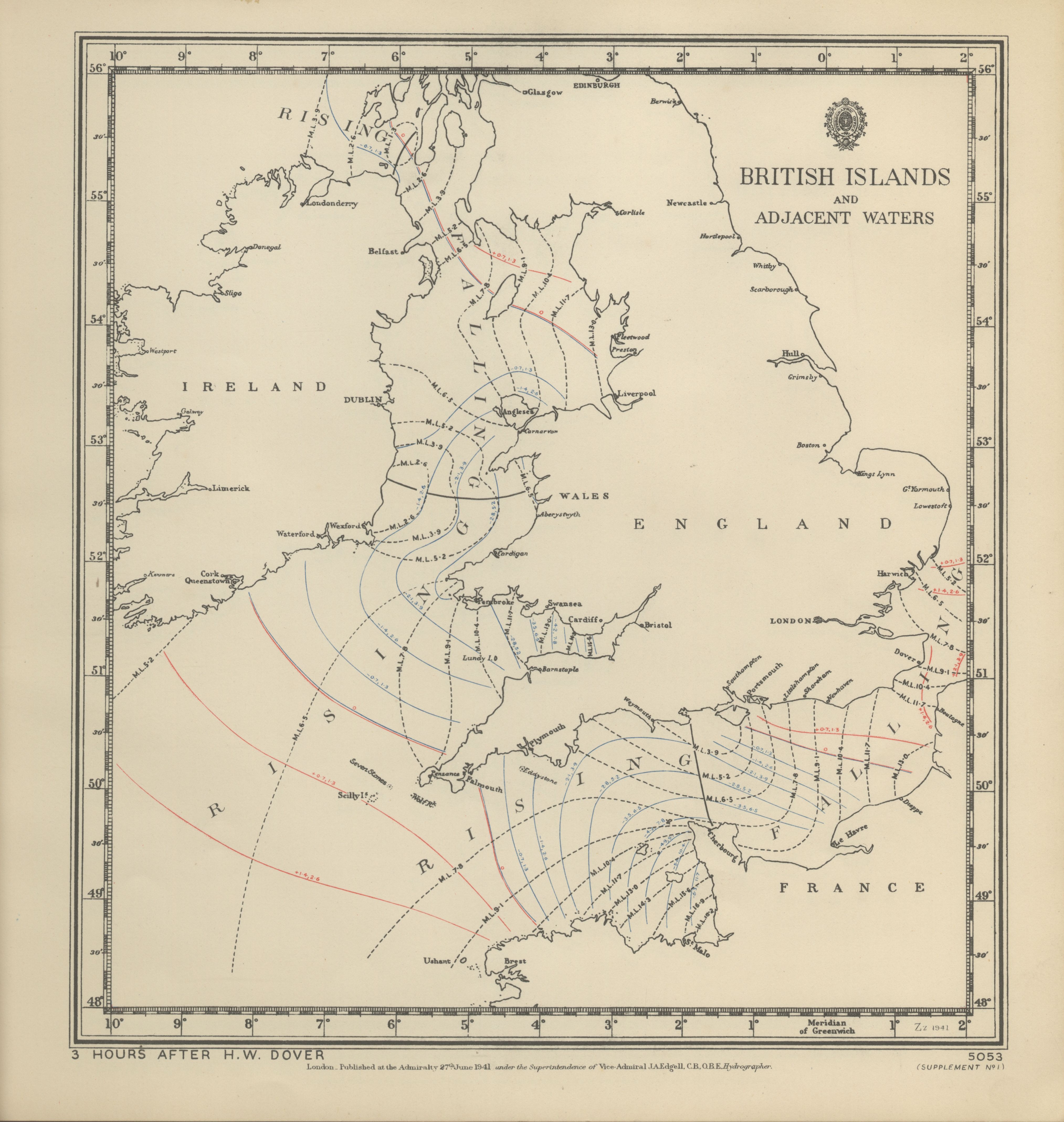 Atlas of tides and tidal streams - British Islands and adjacent waters. 3 hours after H.W. Dover