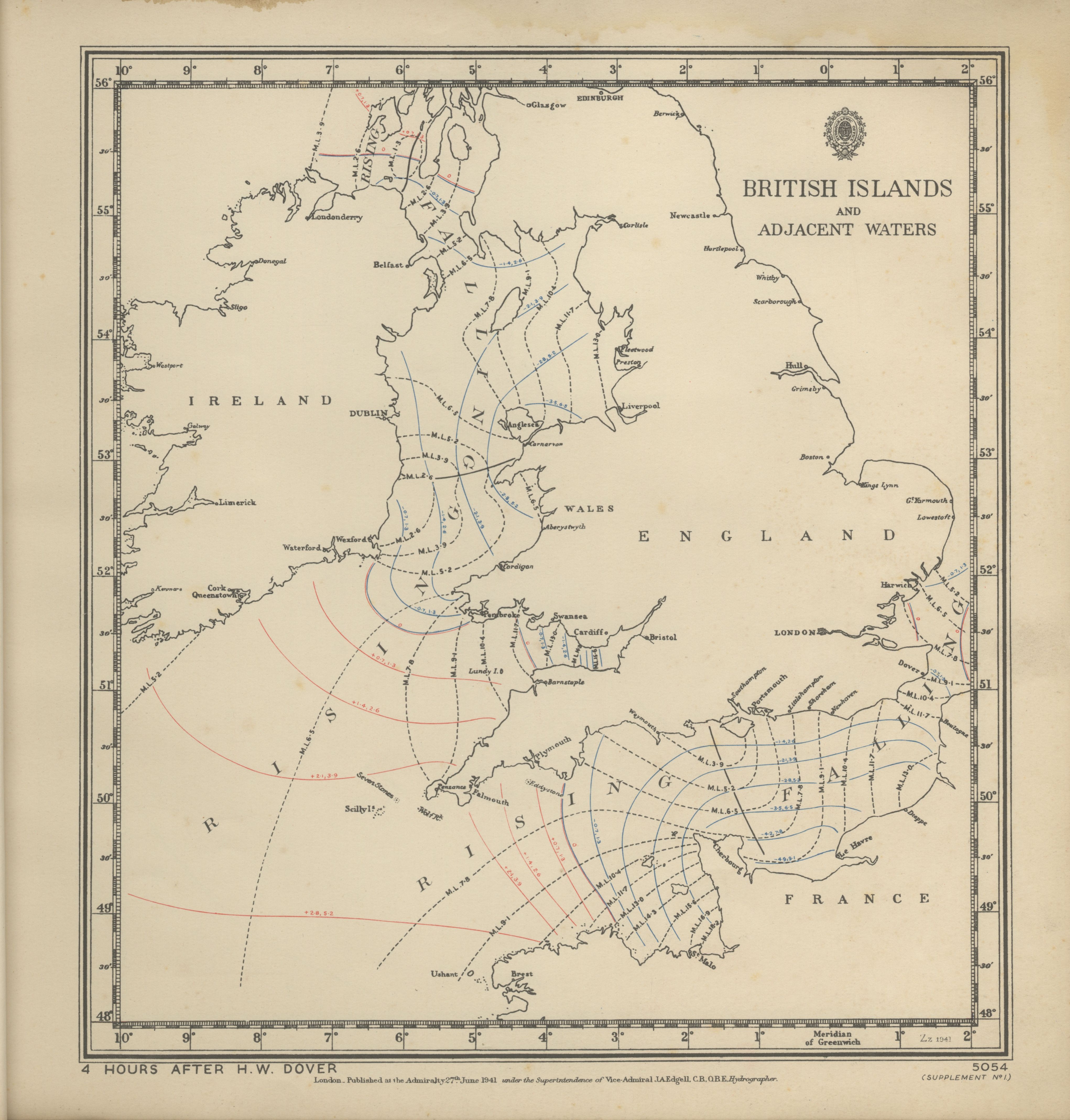 Atlas of tides and tidal streams - British Islands and adjacent waters. 4 hours after H.W. Dover