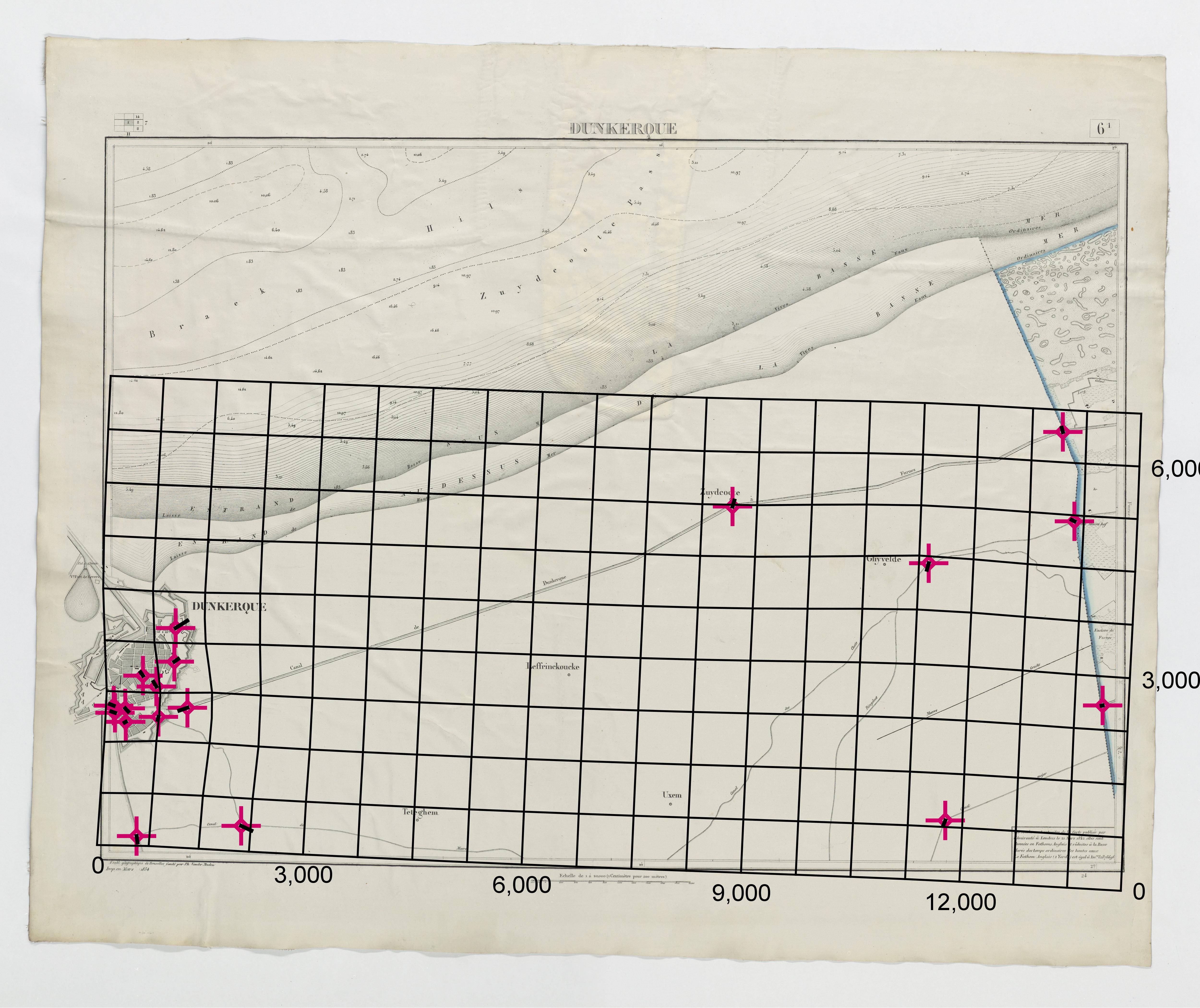 Carte topographique de la Belgique, dressée sous la direction de Ph.Vander Maelen, fondateur de l'établissement géographique de Bruwelles, à l'échelle de 1 à 20.000, en 250 feuilles. - Dunkerque