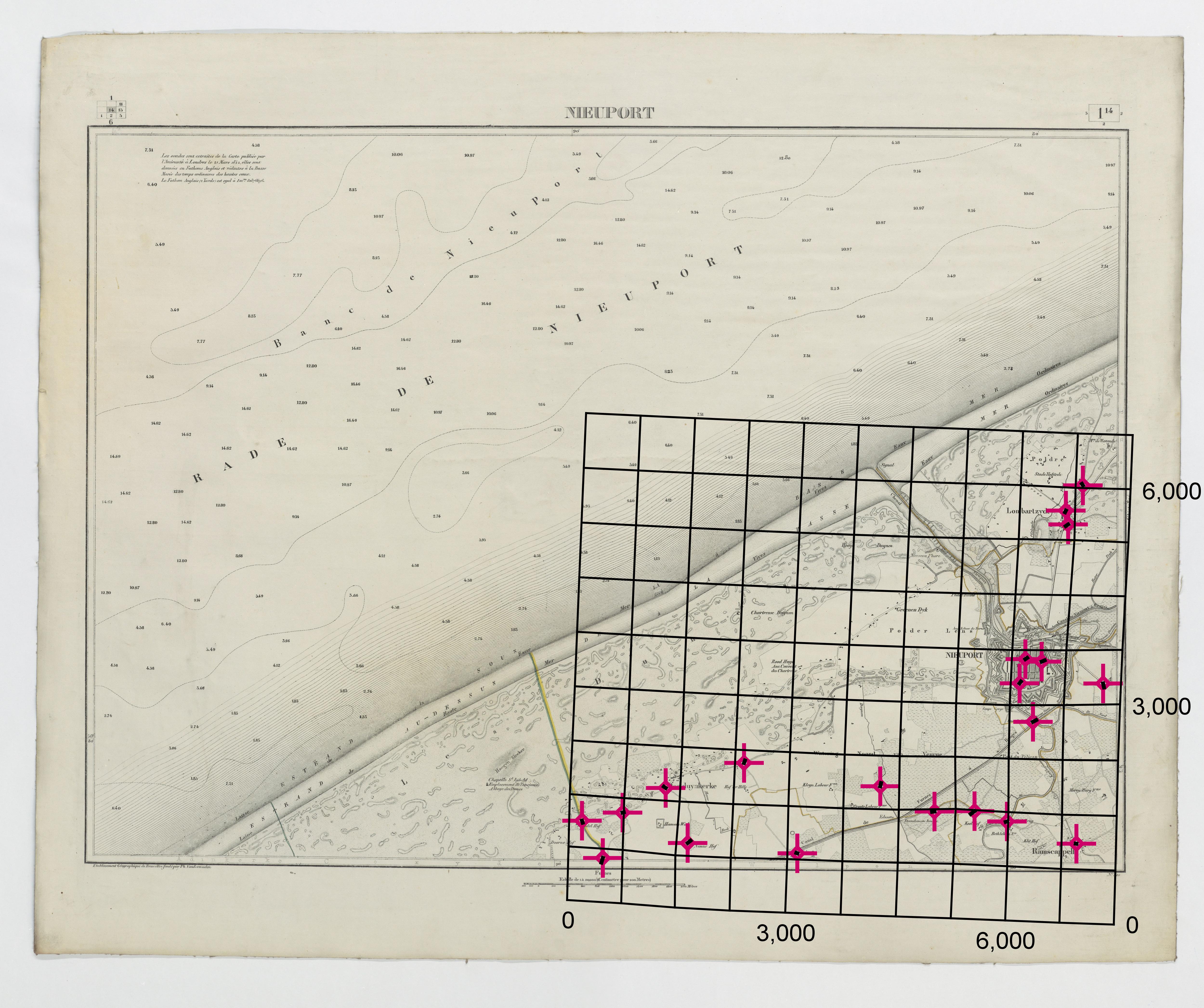 Carte topographique de la Belgique, dressée sous la direction de Ph.Vander Maelen, fondateur de l'établissement géographique de Bruwelles, à l'échelle de 1 à 20.000, en 250 feuilles. - Nieuport