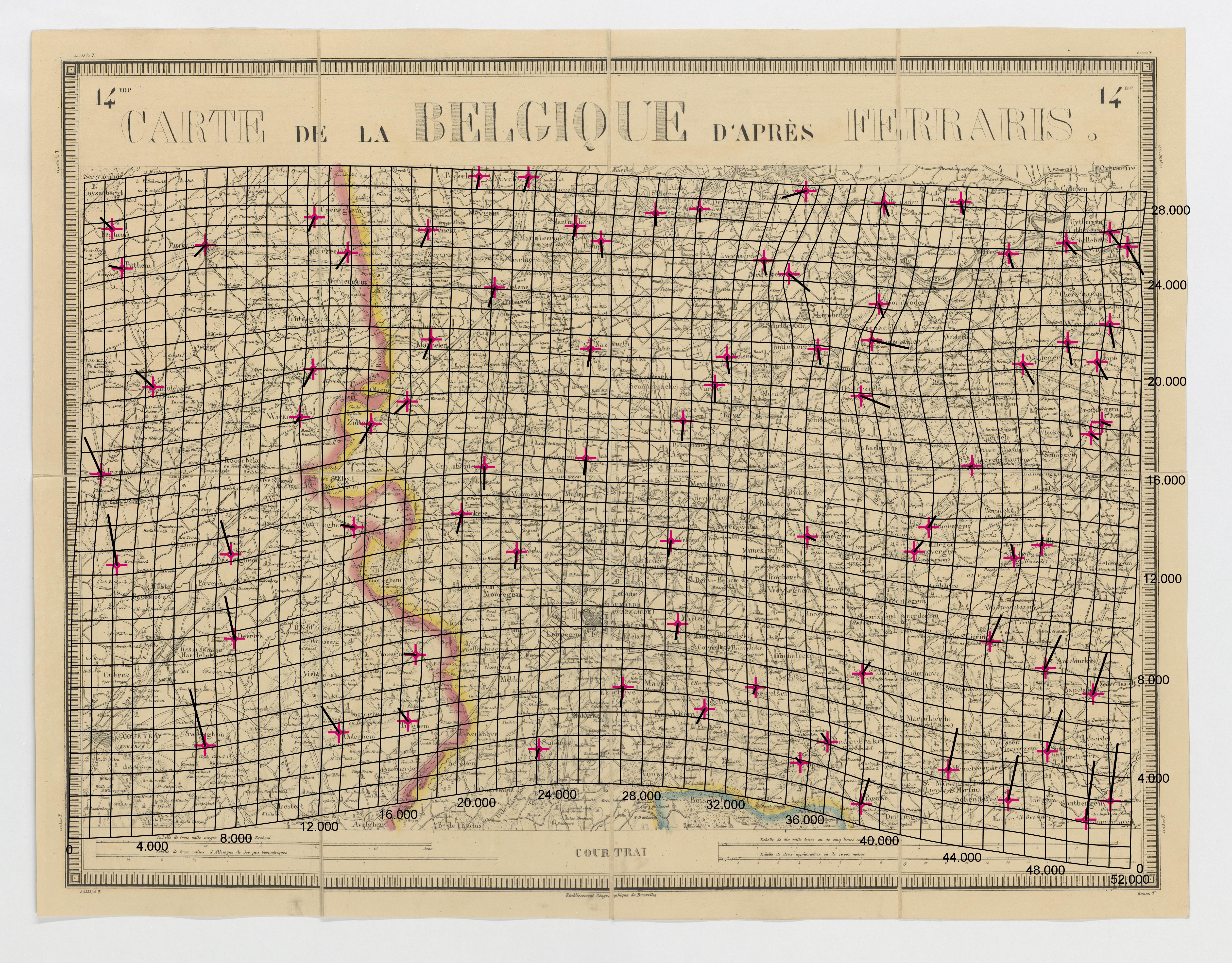 Carte de la Belgique d'après Ferraris, augmentée des plans des six villes principales et de l'indication des routes, canaux et autres traveaux exécutés depuis 1777 jusqu'en 1831. 42 feuilles. II