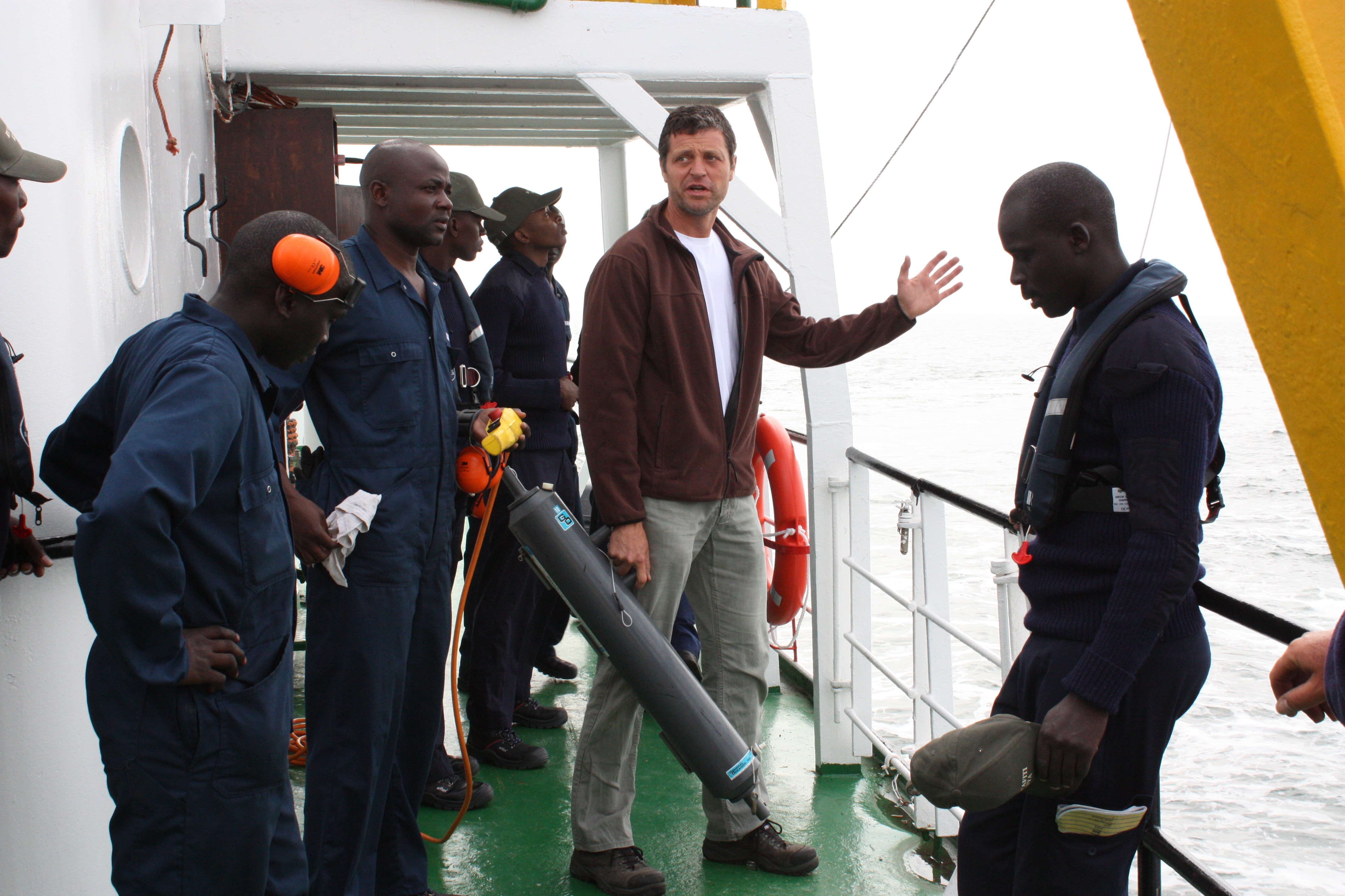 Training session in Ostend on the use of the sampling equipment on board of RV Mtafiti20 August 2013André Cattrijsse (Head of department Infrastructure at VLIZ) provided on board demonstrations for the Kenyan Navy crew on the use and maintenance of the sampling equipment on board of RV Mtafiti during a trial cruise in the North Sea on 20 August 2013. |