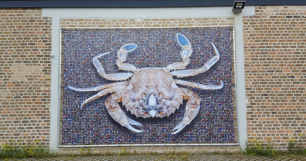 De krab werd verzameld aan boord van de RV Simon Stevin in het voorjaar van 2014. Nu, twee jaar na datum is het kunstwerk (3,5m op 4m), onder de vorm van een épreuve d’artiste, te aanschouwen op de gevel van het Marien Station Oostende.