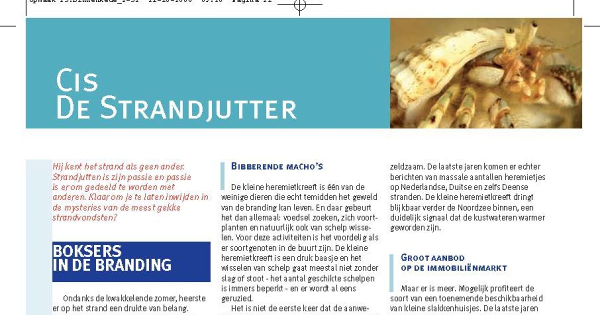 Downloaden Kerckhof, F. (2008). Cis de strandjutter: Boksers in de branding, in: De Grote Rede 23. De Grote Rede: Nieuws over onze Kust en Zee, 23: pp. 21 Auteurs Kerckhof, F.
