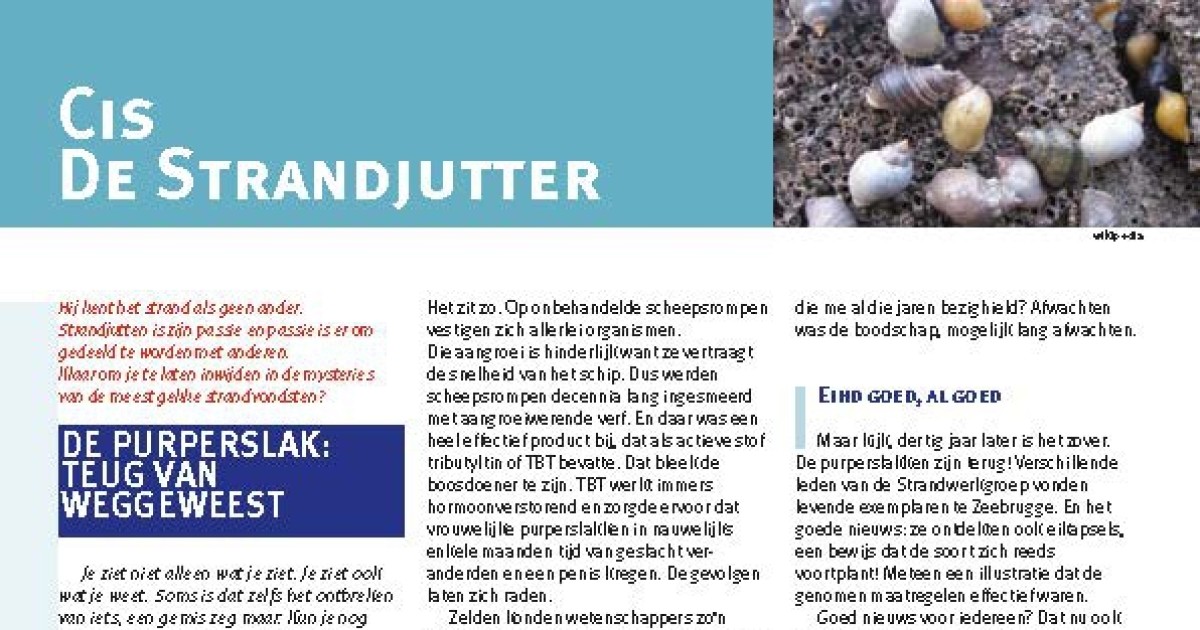 Downloaden Kerckhof, F. (2012). Cis de strandjutter: De purperslak: terug van weggeweest, in: De Grote Rede 34. De Grote Rede: Nieuws over onze Kust en Zee, 34: pp. 23 Auteurs Kerckhof, F.