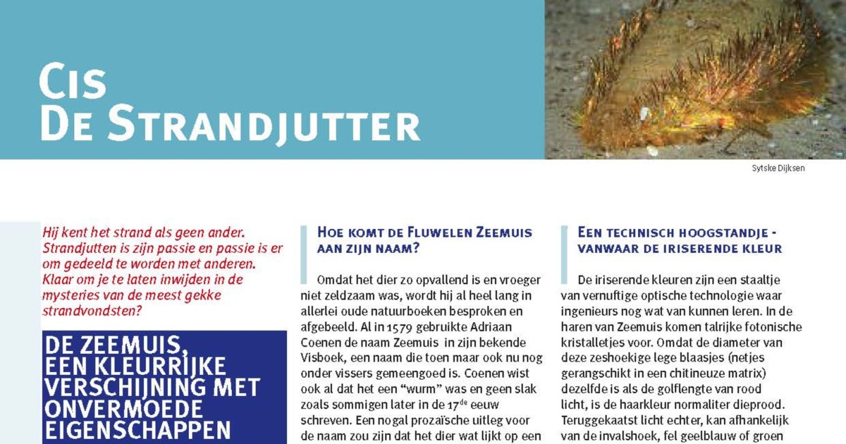 Downloaden Kerckhof, F. (2015). Cis de strandjutter: De zeemuis, een kleurrijke verschijning met onvermoede eigenschappen, in: De Grote Rede 41. De Grote Rede: Nieuws over onze Kust en Zee, 41: pp. 21 Auteurs Kerckhof, F.