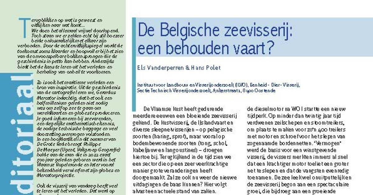 Downloaden Vanderperren, E.; Polet, H. (2011). De Belgische zeevisserij: een behouden vaart?, in: De Grote Rede 31. De Grote Rede: Nieuws over onze Kust en Zee, 31: pp. 2-10 Auteurs Vanderperren, E.; Polet, H.