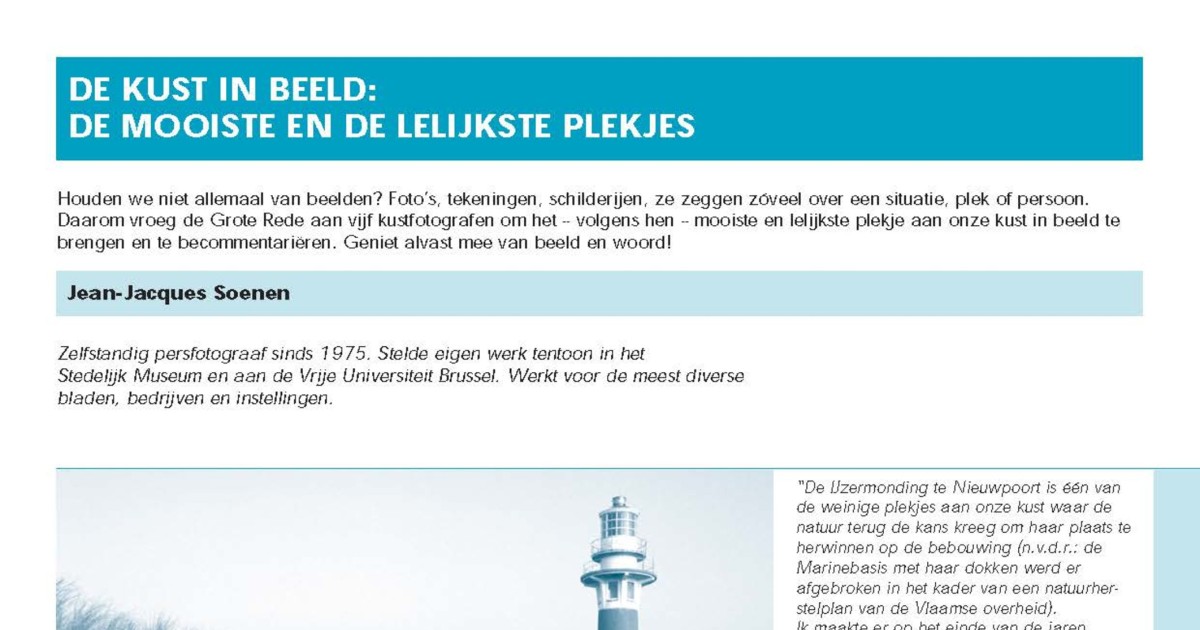 Soenen, J.-J.; Louagie, M.; Maenhoudt, P.; de Kievith, D.; Decleer, M. (2004). De kust in beeld: de mooiste en de lelijkste plekjes, in: De Grote Rede 12. De Grote Rede: Nieuws over onze Kust en Zee, 12: pp. 11-15