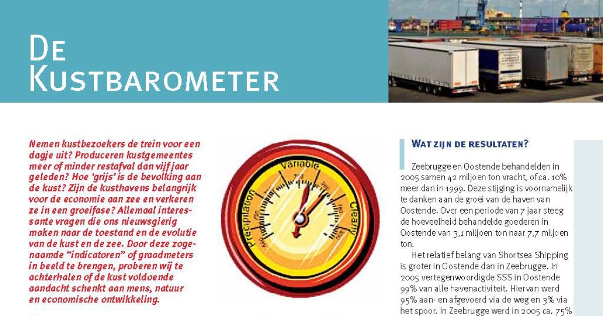 Downloaden Maelfait, H. (2006). De kustbarometer: aandeel goederen via korte zeeroutes vervoerd, in: De Grote Rede 17. De Grote Rede: Nieuws over onze Kust en Zee, 17: pp. 20 Auteurs Maelfait, H.