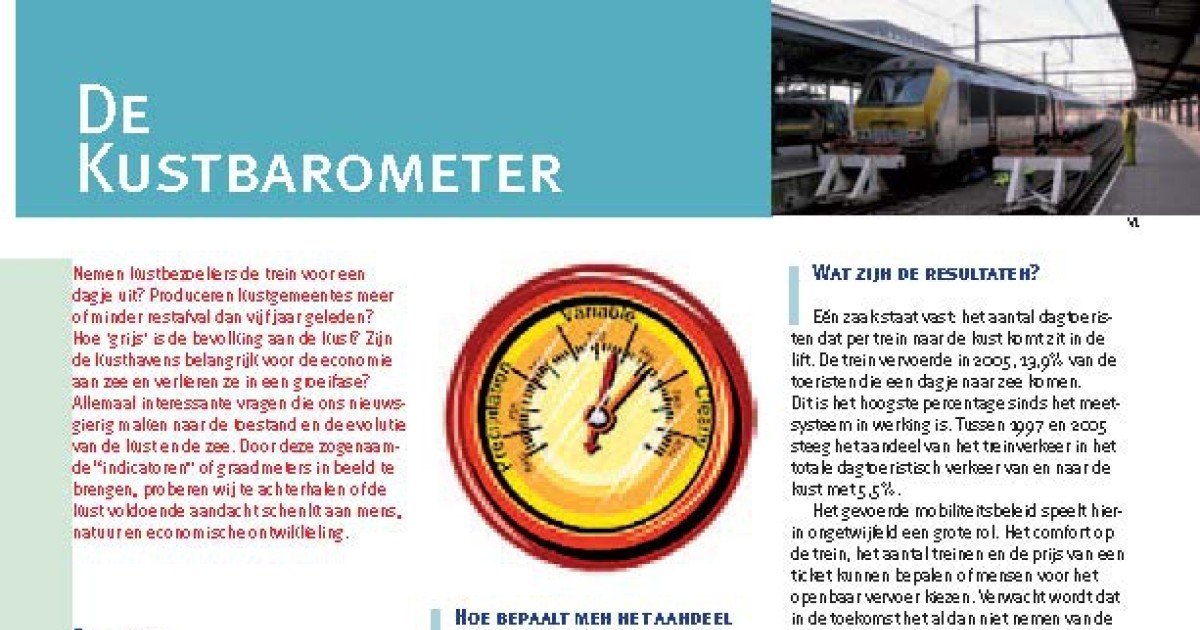 Downloaden Maelfait, H. (2006). De kustbarometer: Hoeveel dagtoeristen komen er met de trein naar de kust?, in: De Grote Rede 16. De Grote Rede: Nieuws over onze Kust en Zee, 16: pp. 23 Auteurs Maelfait, H.