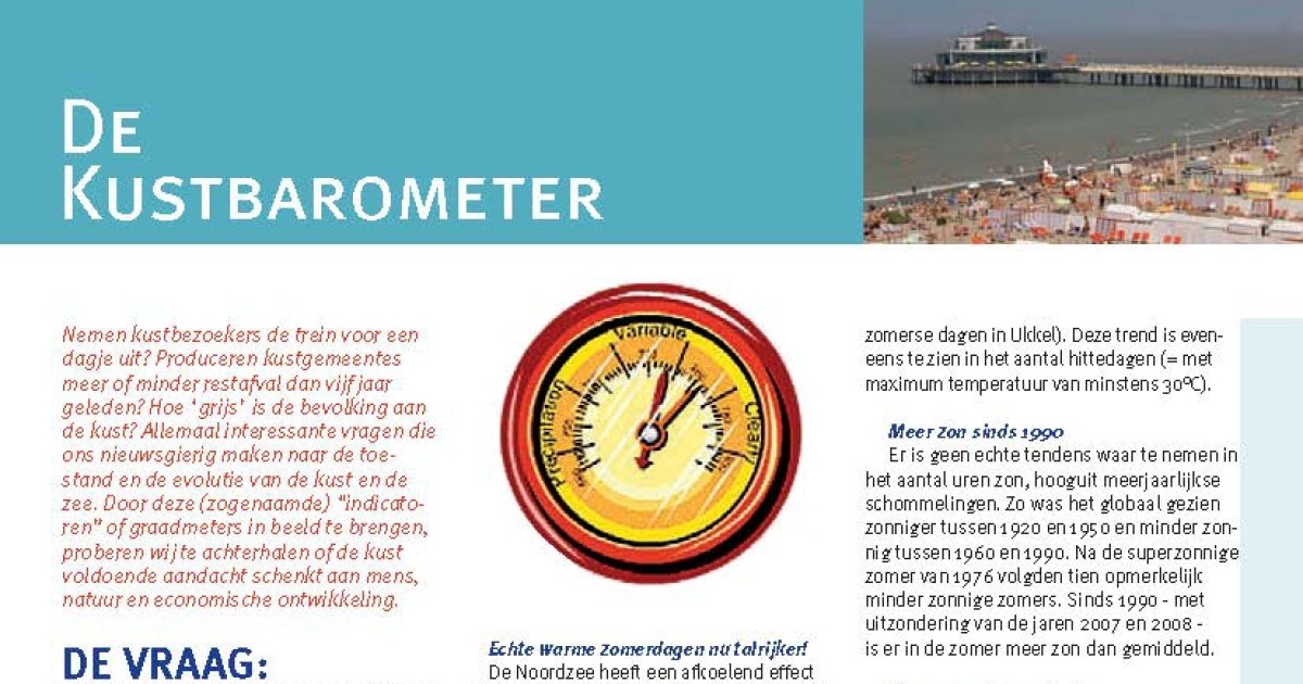 Downloaden Debontridder, L.; Maelfait, H. (2009). De kustbarometer: Waren de zomers aan zee vroeger echt beter?, in: De Grote Rede 25. De Grote Rede: Nieuws over onze Kust en Zee, 25: pp. 26 Auteurs Debontridder, L.; Maelfait, H.