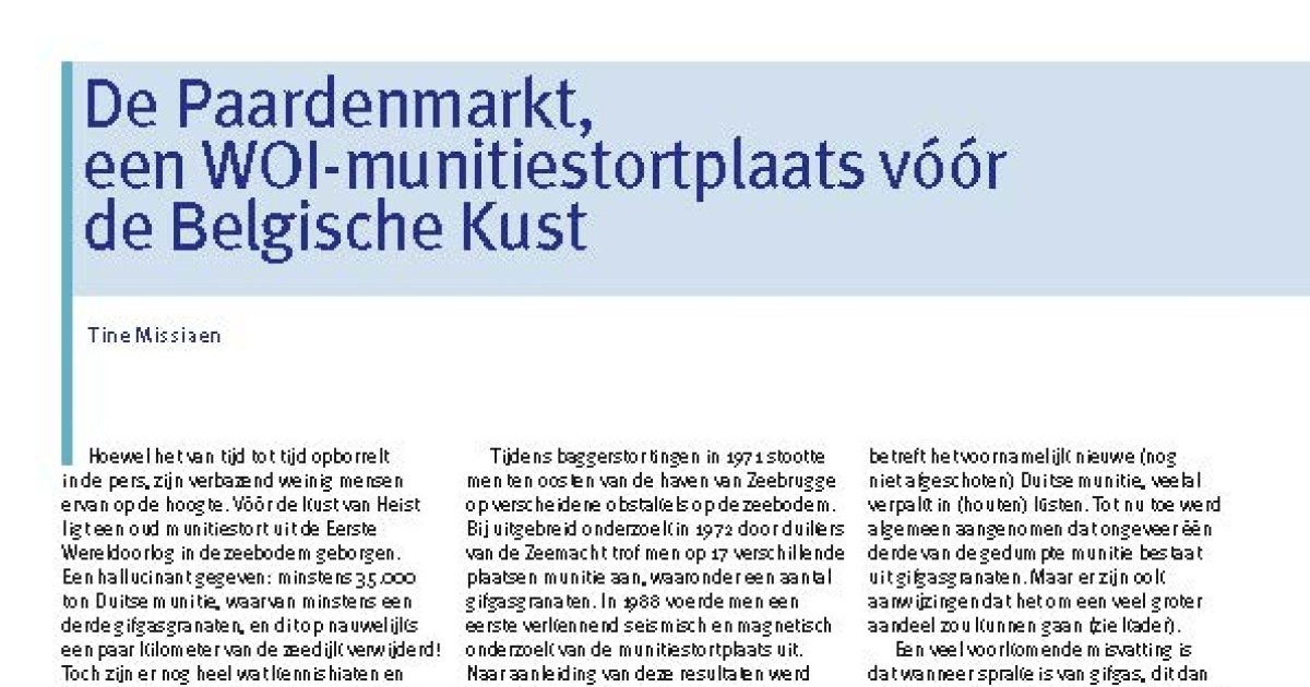 Downloaden Missiaen, T. (2013). De Paardenmarkt, een WOI-munitiestortplaats vóór de Belgische kust, in: De Grote Rede 36: De Groote Oorlog en de Zee. pp. 53-60 Auteurs Missiaen, T.