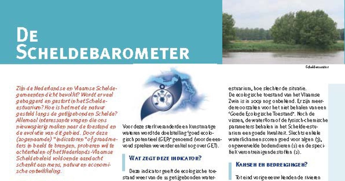 Downloaden Debergh, H. (2011). De Scheldebarometer: Hoe is het met de waterkwaliteit in het Schelde-estuarium?, in: De Grote Rede 29. De Grote Rede: Nieuws over onze Kust en Zee, 29: pp. 28 Auteurs Debergh, H.