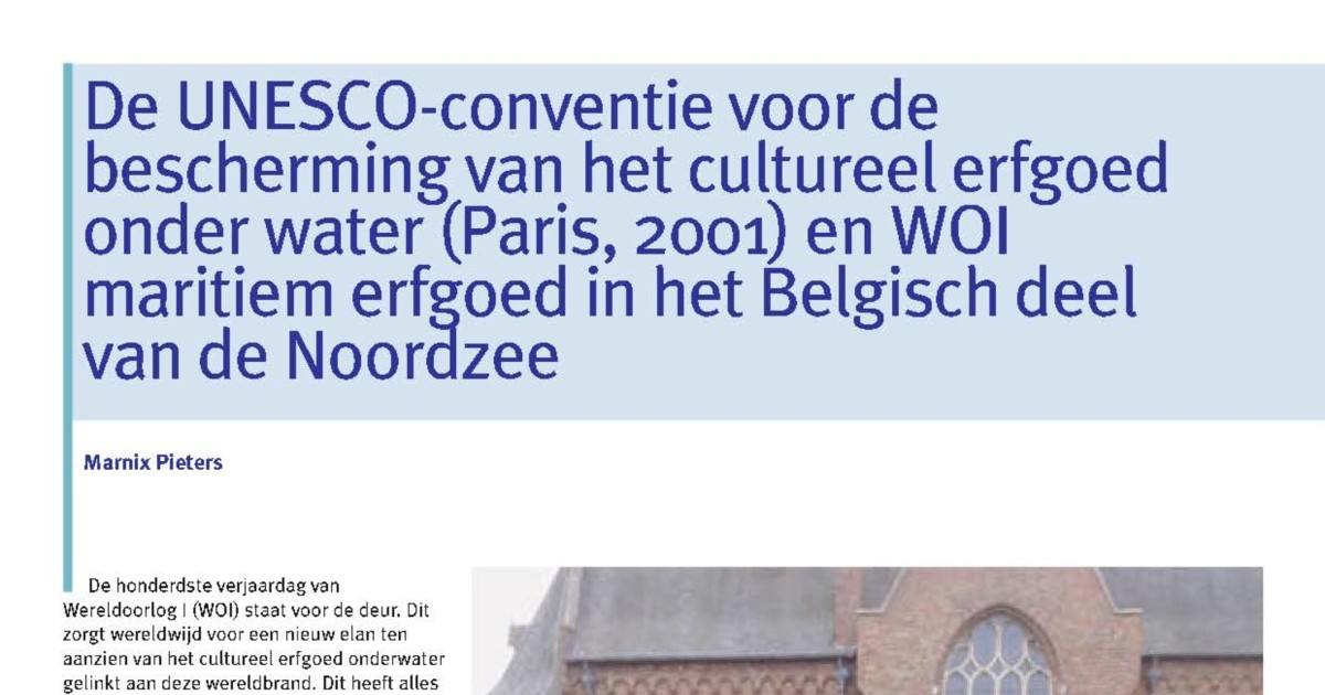 De UNESCO-conventie voor de bescherming van het cultureel erfgoed onder water (Paris, 2001) en WOI maritiem erfgoed in het Belgisch deel van de Noordzee