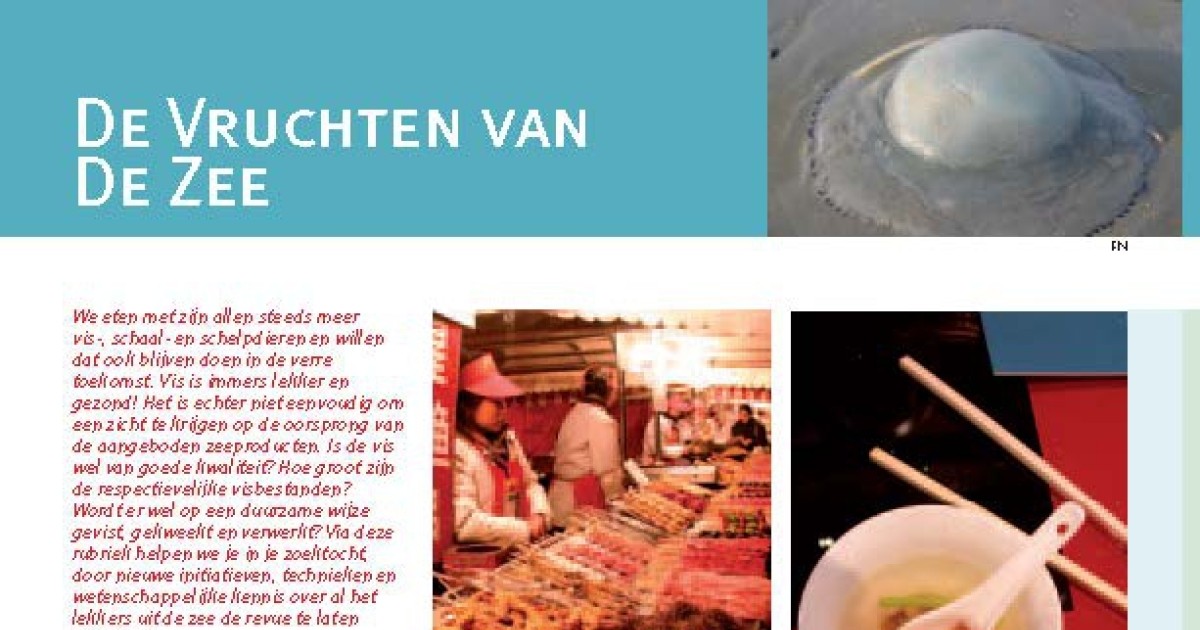Downloaden Fockedey, N. (2007). De vruchten van de zee: Lunchen we anno 2050 met een kwalslaatje?, in: De Grote Rede 18. De Grote Rede: Nieuws over onze Kust en Zee, 18: pp. 22 Auteurs Fockedey, N.