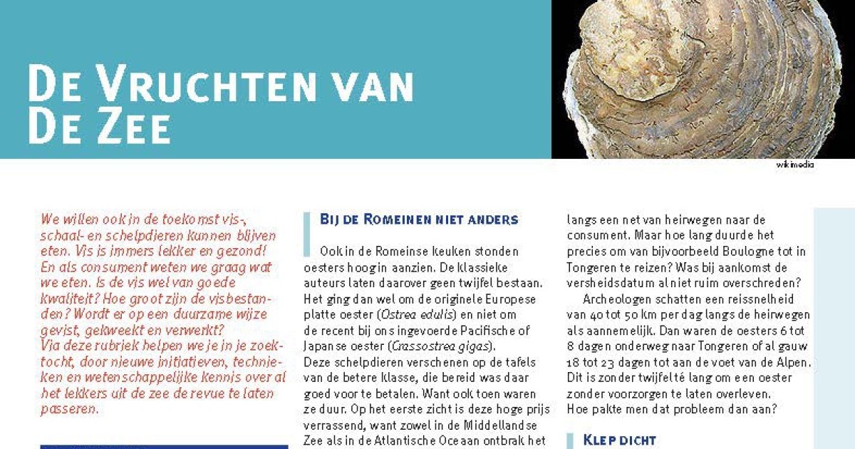 Downloaden Ervynck, A. (2011). De vruchten van de zee: Oesters op z'n romeins, in: De Grote Rede 29. De Grote Rede: Nieuws over onze Kust en Zee, 29: pp. 26 Auteurs Ervynck, A.