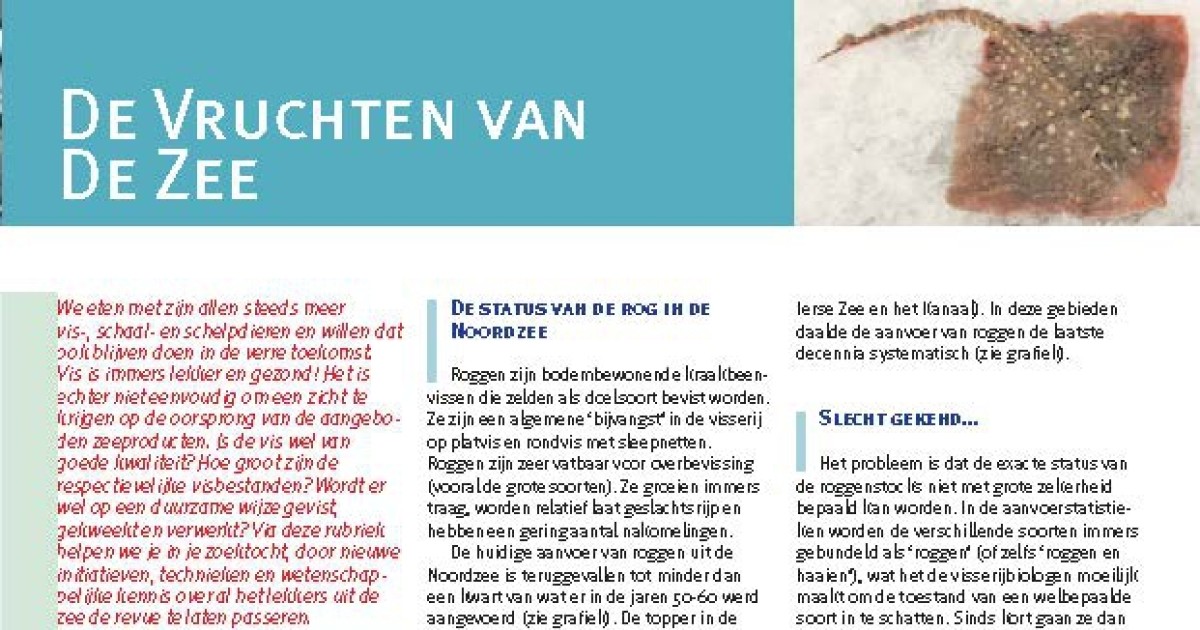 Downloaden Fockedey, N. (2007). De vruchten van de zee: Rog, vis van het jaar 2007?, in: De Grote Rede 19. De Grote Rede: Nieuws over onze Kust en Zee, 19: pp. 21 Auteurs Fockedey, N.