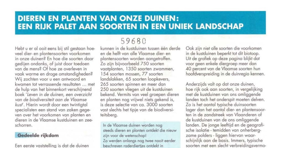 Downloaden Bonte, D.; Provoost, S. (2004). Dieren en planten van onze duinen: een rijk palet aan soorten in een uniek landschap, in: De Grote Rede 10. De Grote Rede: Nieuws over onze Kust en Zee, 10: pp. 8-12 Auteurs Bonte, D.; Provoost, S.