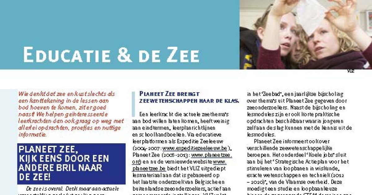Downloaden Copejans, E. (2013). Educatie & de Zee: Planeet Zee, kijk eens door een andere bril naar de zee!, in: De Grote Rede 37. De Grote Rede: Nieuws over onze Kust en Zee, 37: pp. 29 Auteurs Copejans, E.