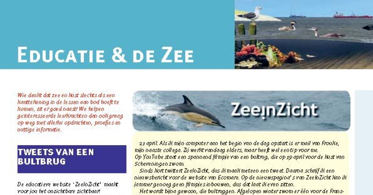 Downloaden Copejans, E. (2011). Educatie & de zee: Tweets van een bultrug, in: De Grote Rede 30. De Grote Rede: Nieuws over onze Kust en Zee, 30: pp. 24 Auteurs Copejans, E.
