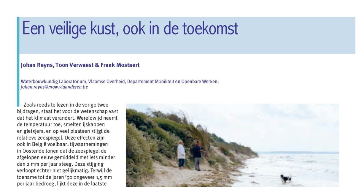 Downloaden Reyns, J.; Verwaest, T.; Mostaert, F. (2011). Een veilige kust, ook in de toekomst, in: De Grote Rede 30. De Grote Rede: Nieuws over onze Kust en Zee, 30: pp. 15-18 Auteurs Reyns, J.; Verwaest, T.; Mostaert, F.