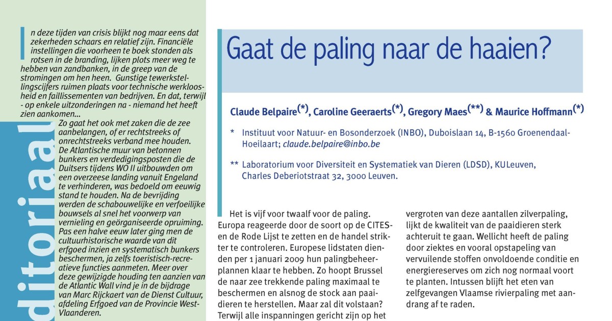 Downloaden Belpaire, C.; Geeraerts, C.; Maes, G.; Hoffmann, M. (2009). Gaat de paling naar de haaien?, in: De Grote Rede 24. De Grote Rede: Nieuws over onze Kust en Zee, 24: pp. 2-7 Auteurs Belpaire, C.; Geeraerts, C.; Maes, G.; Hoffmann, M.