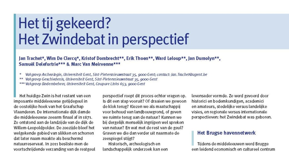 Trachet, J.; De Clercq, W.; Dombrecht, K.; Thoen, E.; Leloup, W.; Dumolyn, J.; Delefortrie, S.; Van Meirvenne, M. (2015). Het tij gekeerd? Het Zwindebat in perspectief, in: De Grote Rede 42. De Grote Rede: Nieuws over onze Kust en Zee, 42: pp. 5-11
