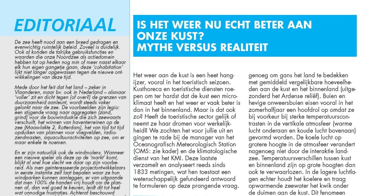 Downloaden Dehenauw, D. (2002). Is het weer nu echt beter aan onze kust? Mythe versus realiteit, in: De Grote Rede 5. De Grote Rede: Nieuws over onze Kust en Zee, 5: pp. 2-5 Auteurs Dehenauw, D.