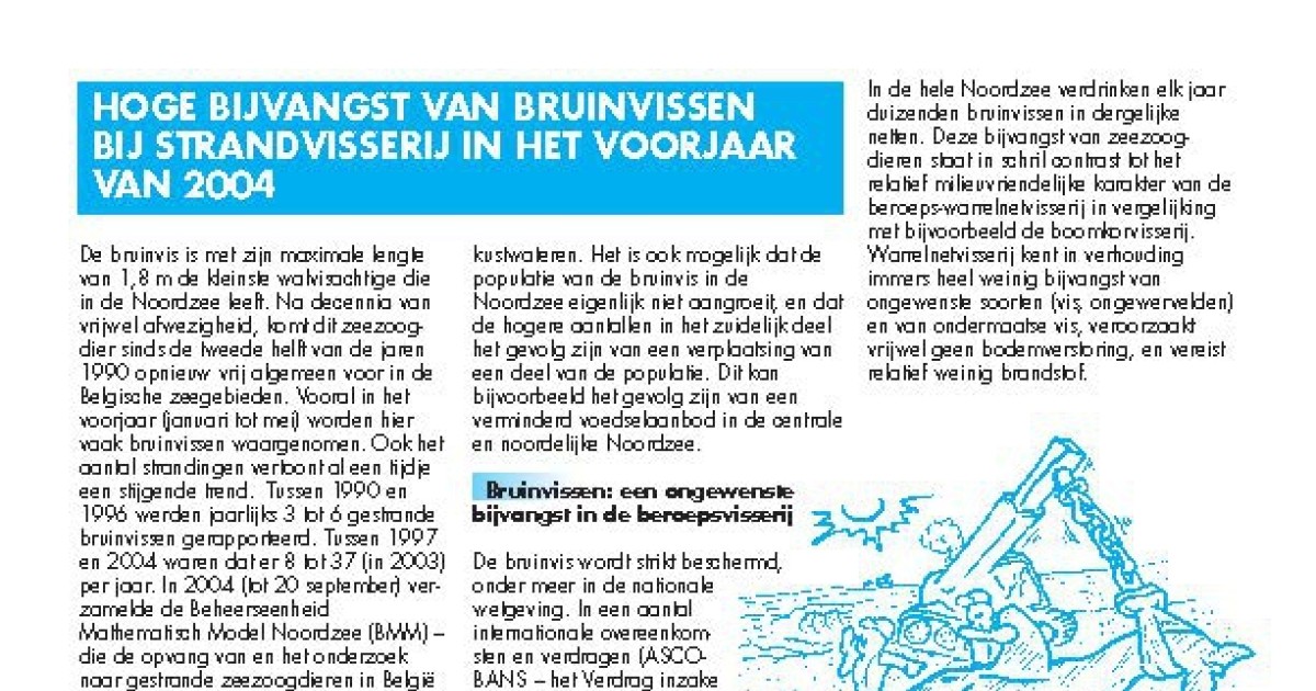 Downloaden Haelters, J.; Kerckhof, F. (2004). Hoge bijvangst van bruinvissen bij strandvisserij in het voorjaar van 2004, in: De Grote Rede 11. De Grote Rede: Nieuws over onze Kust en Zee, 11: pp. 6-7 Auteurs Haelters, J.; Kerckhof, F.