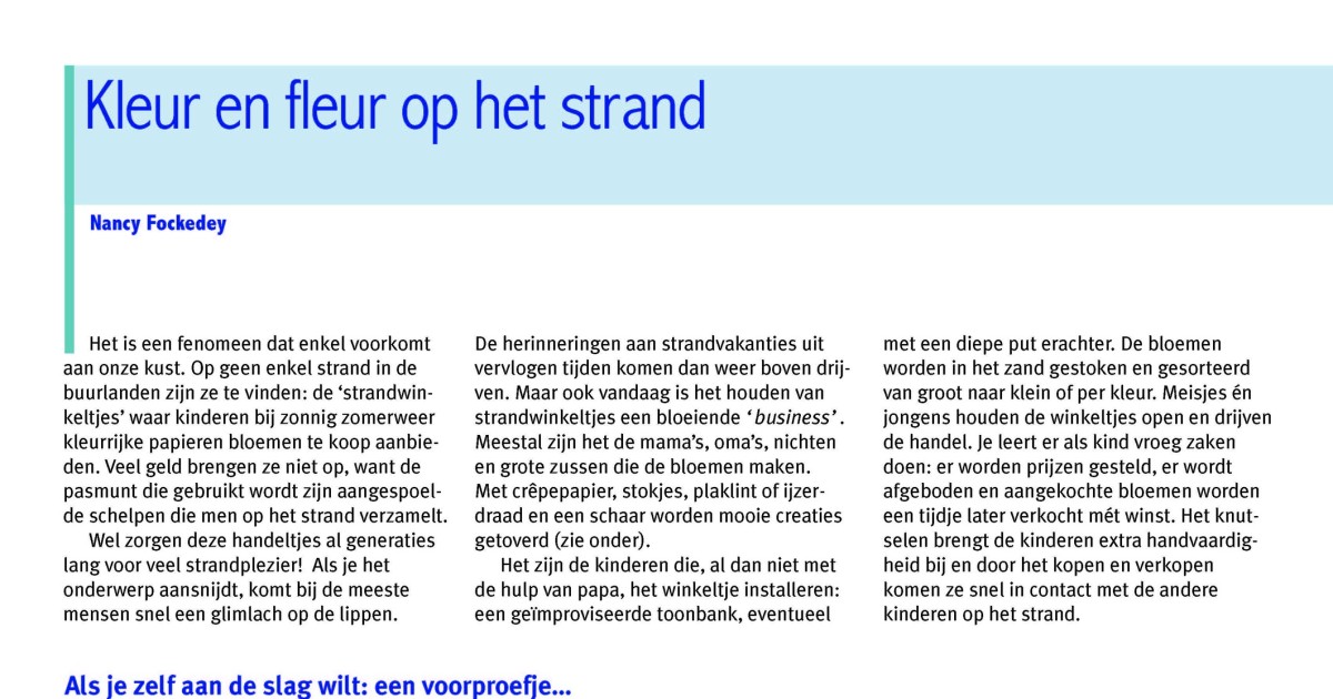 Downloaden Fockedey, N. (2007). Kleur en fleur op het strand, in: De Grote Rede 19. De Grote Rede: Nieuws over onze Kust en Zee, 19: pp. 13-19 Auteurs Fockedey, N.