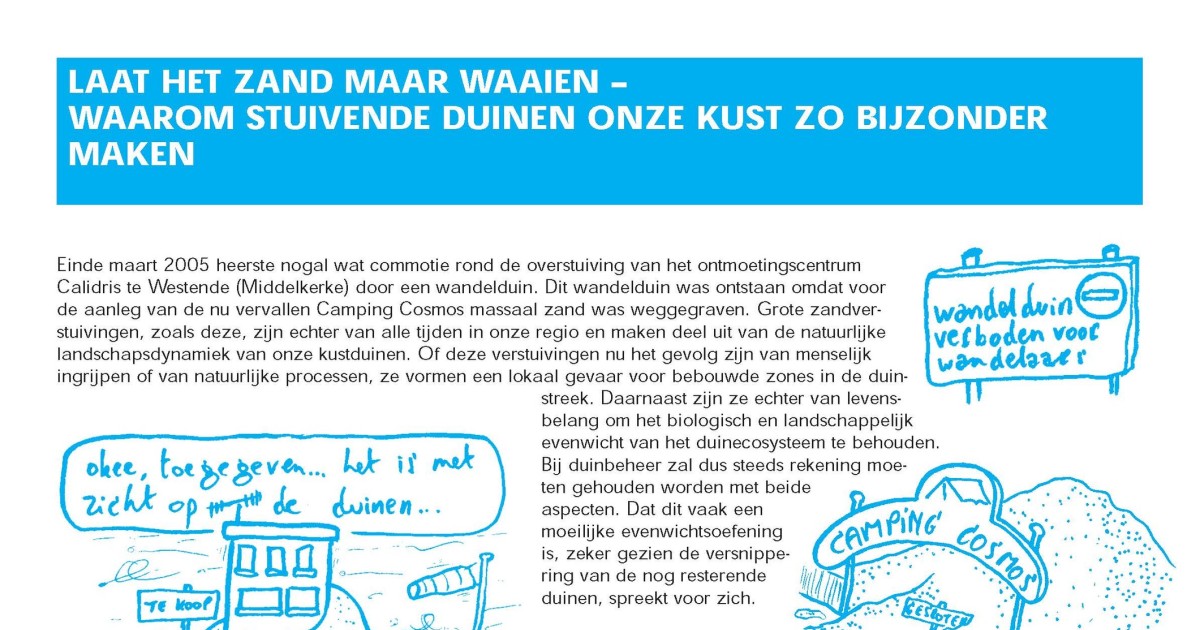 Downloaden Bonte, D.; Provoost, S. (2005). Laat het zand maar waaien - waarom stuivende duinen onze kust zo bijzonder maken, in: De Grote Rede 14. De Grote Rede: Nieuws over onze Kust en Zee, 14: pp. 12-16 Auteurs Bonte, D.; Provoost, S.