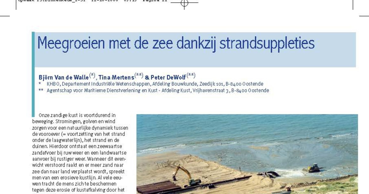 Downloaden Van de Walle, B.; Mertens, T.; De Wolf, P. (2008). Meegroeien met de zee dankzij strandsuppleties, in: De Grote Rede 23. De Grote Rede: Nieuws over onze Kust en Zee, 23: pp. 11-15 Auteurs Van de Walle, B.; Mertens, T.; De Wolf, P.