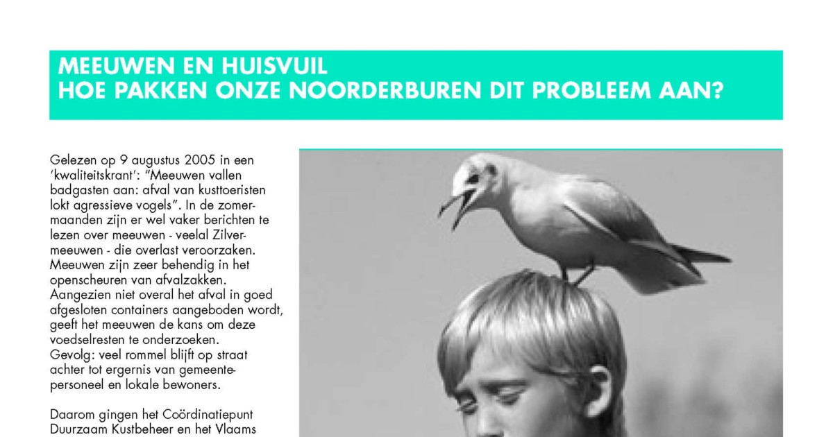 Downloaden Maelfait, H.; Belpaeme, K. (2005). Meeuwen en huisvuil: hoe pakken onze noorderburen dit probleem aan?, in: De Grote Rede 15. De Grote Rede: Nieuws over onze Kust en Zee, 15: pp. 26-27 Auteurs Maelfait, H.; Belpaeme, K.